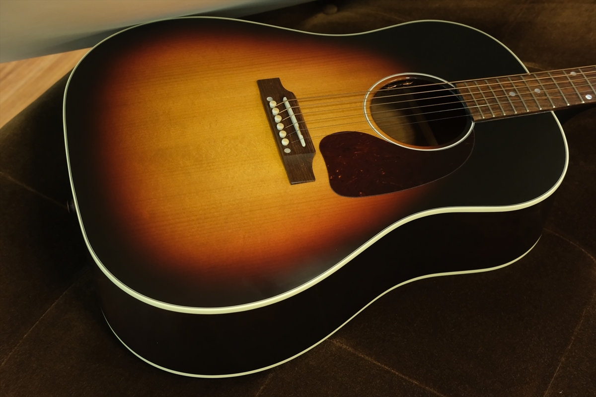 こちらはレギュラーのヴィンテージサンバーストより赤みが強い、50年代後期のヴィンテージ J-45の色合いを再現したJ-45の別注モデルです。